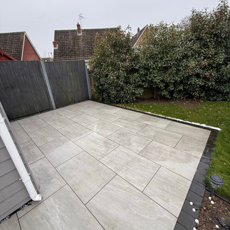 This garden and driveway transformation features beautiful Kandla Grey porcelain paving, chosen for its ability to replicate the natural look of sandstone while offering all the practical benefits of porcelain. The result is a sleek, modern finish that is durable, low maintenance, and perfect for outdoor living.